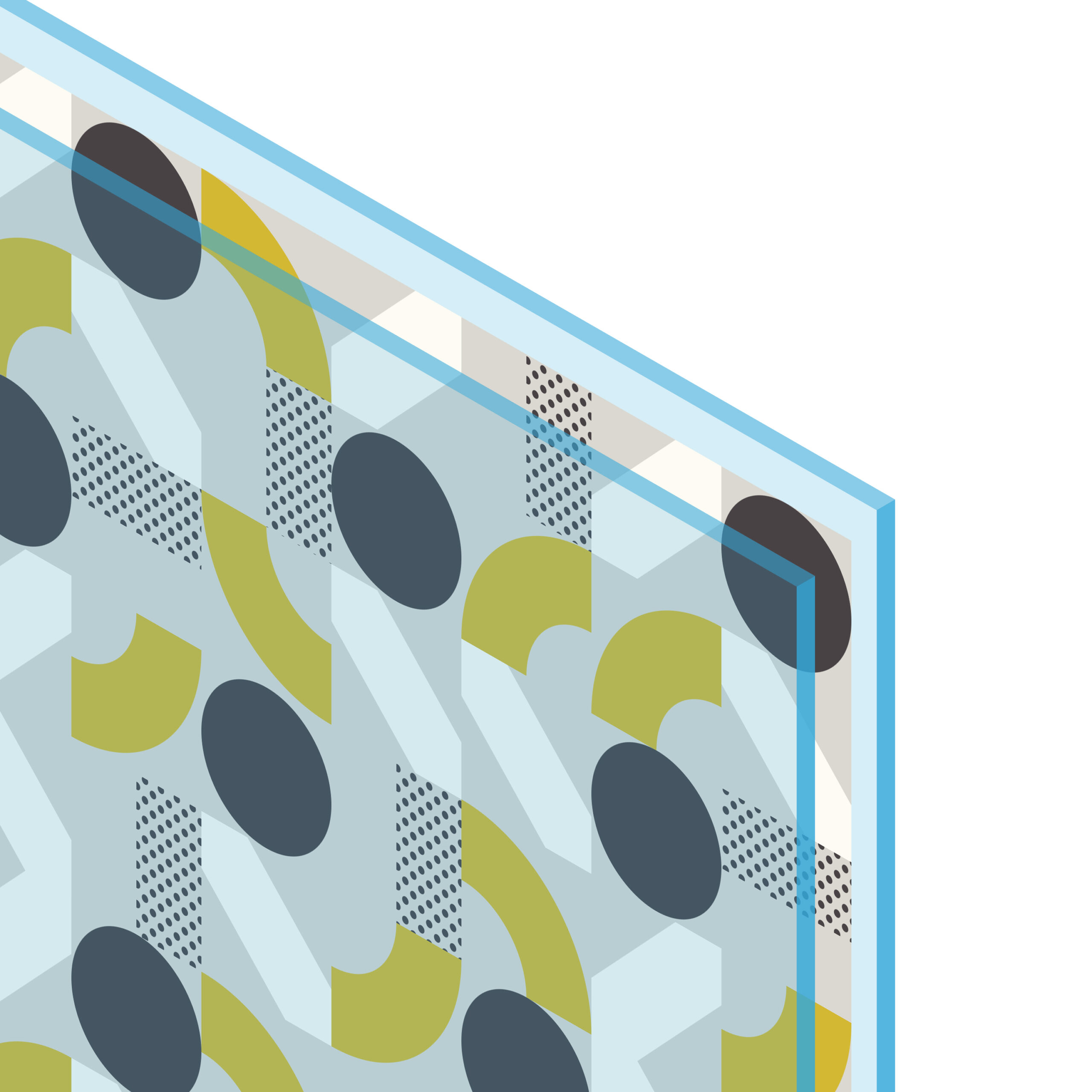 Stampa digitale su vetro da stratificare con fondo personalizzato o in trasparenza.